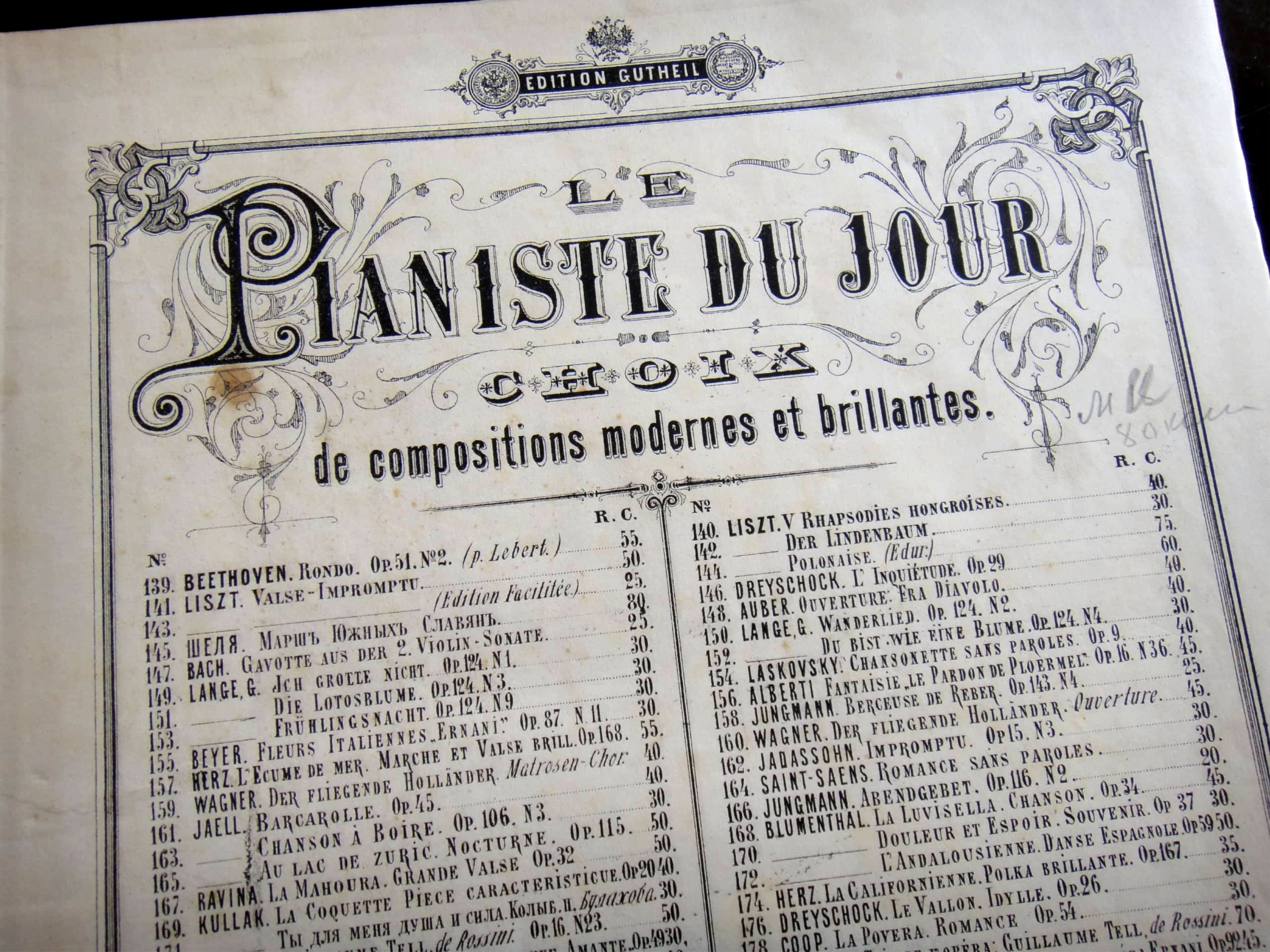 Старинное московское издание конца XIX века представляет ноты из серии Гутхейля «Современный пианист» — мелодичный красивый ноктюрн «Альпийская роза». Альберт Юнгман — очень популярный в то время композитор — родился в городке Лангезальца в Пруссии, большую часть жизни прожил в Вене, автор многочисленных салонных фортепианных пьес.
