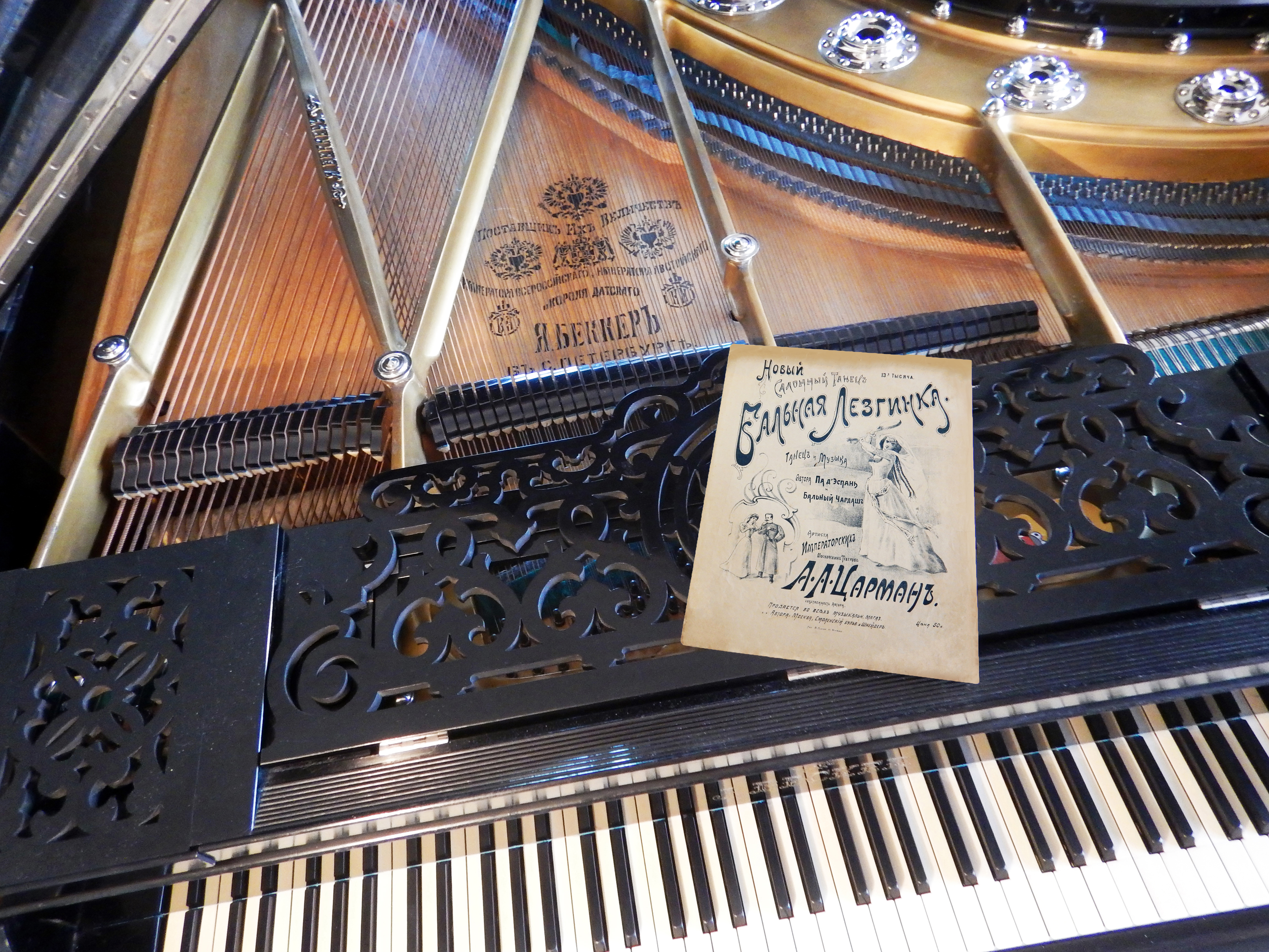 Ноты представляют салонный вариант знаменитого кавказского танца, сочиненный известным в начале ХХ века московским танцовщиком и балетмейстером А. Царманом. В описании фигур господин Царман — артист Императорских театров — предлагает движения, которые вполне под силу танцорам с обычными навыками.