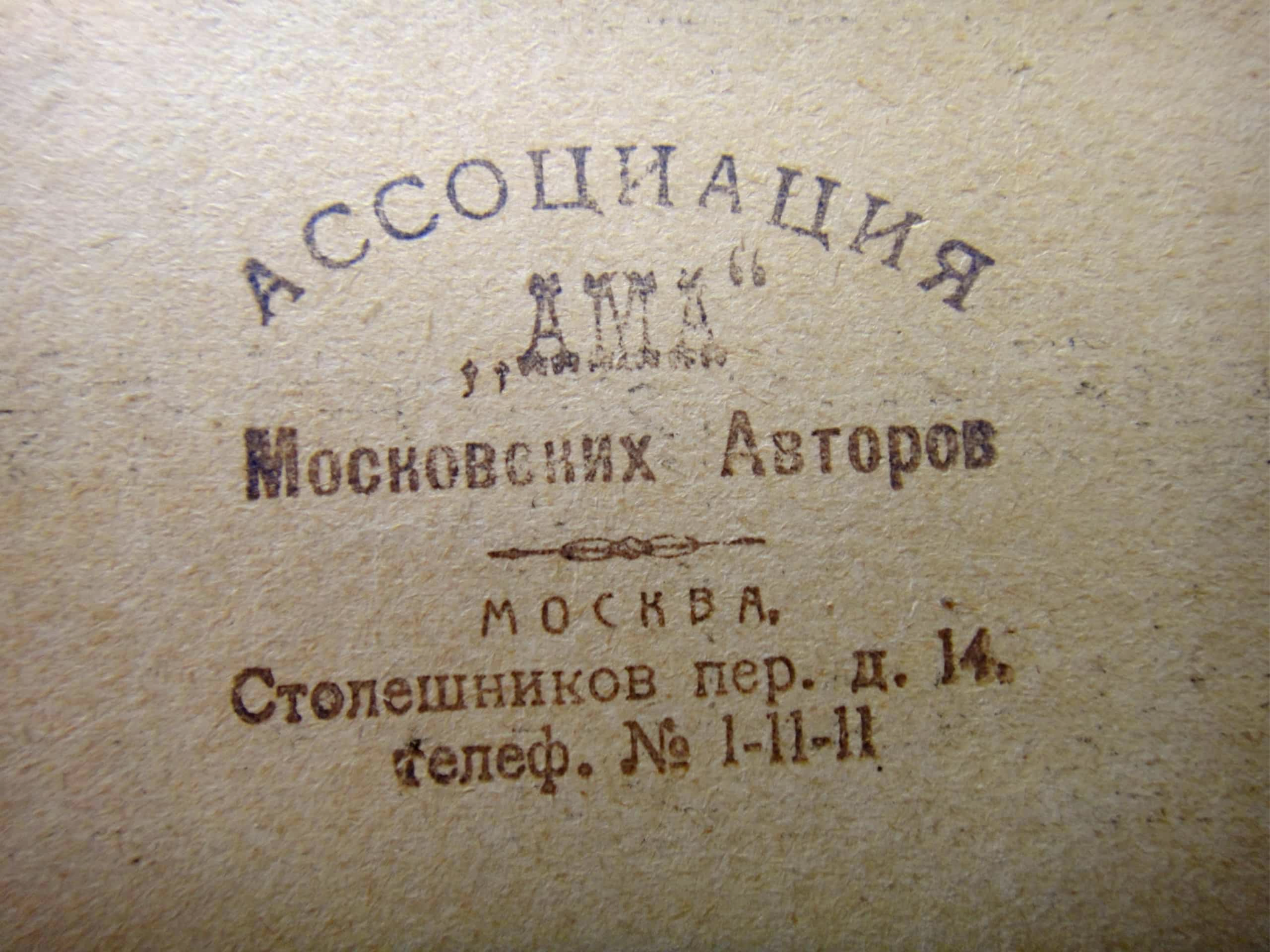 Москва, издание автора (зак. № 2149), типолитография и нотопечатня «1-я Артель «Советский печатник», Моховая, 40