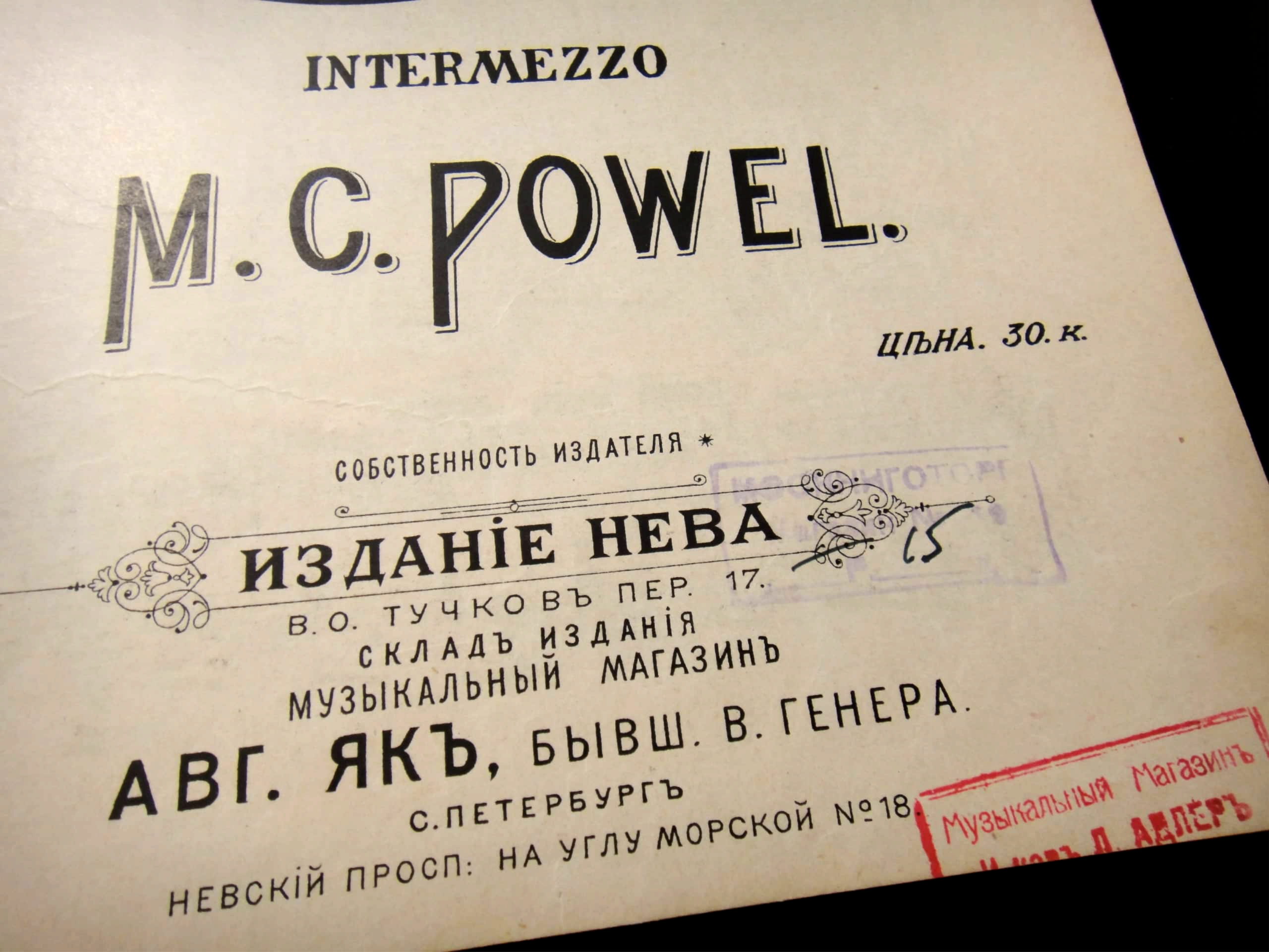 Интересно, что псевдоним автора указан в заголовке с ошибками: M. C. Powel вместо правильного W. C. Powell. В нотном же тексте этих ошибок нет. Это говорит о том, что обложка была создана не слишком внимательным российским художником.