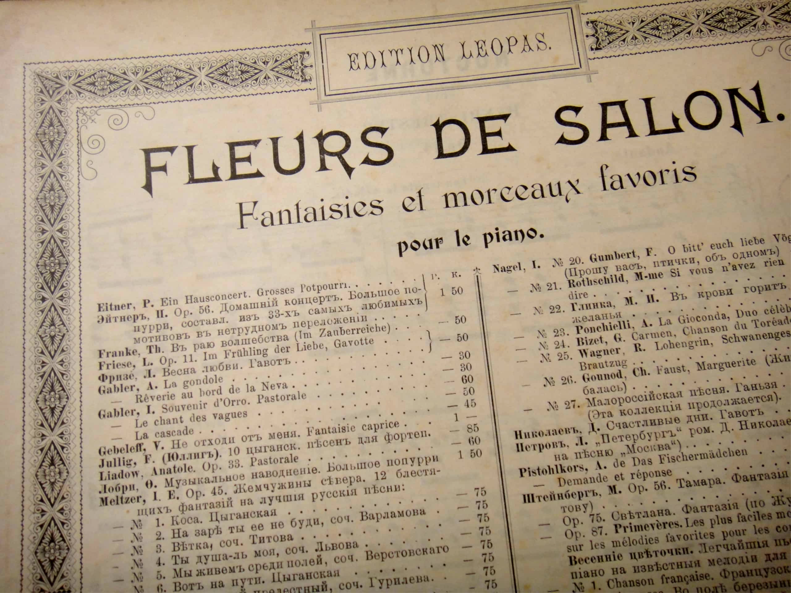 Ноты впервые были проданы (согласно штампу) нотным магазином торговой и прокатной фирмы «К. Розе» в Санкт-Петербурге на Литейном проспекте, 33, совсем недалеко от магазина самого издателя данного выпуска — Карла Леопаса на Невском, 80.