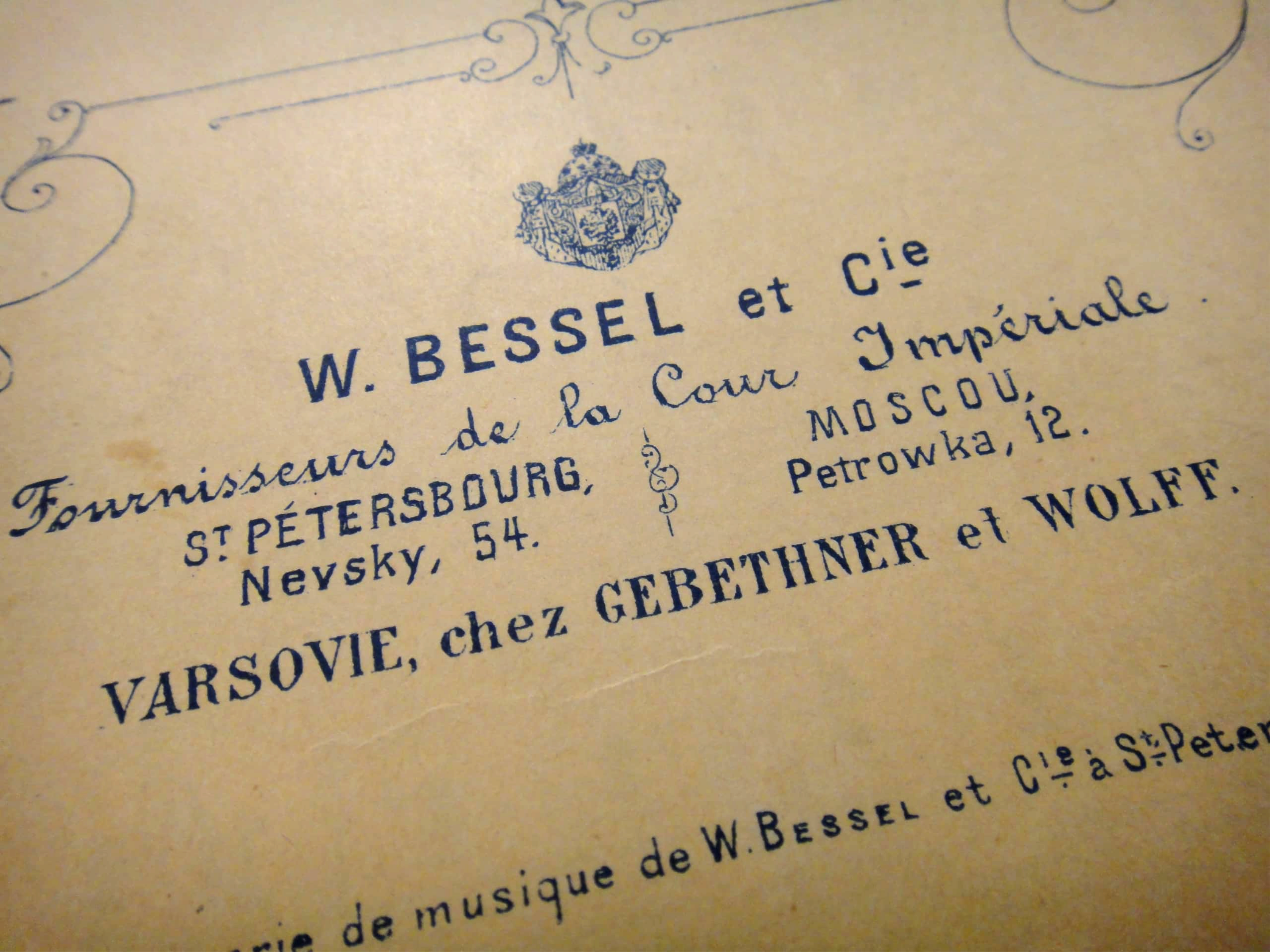Санкт-Петербург и Москва, издатели Василий Бессель и Компания (№ 3100), поставщики Двора Его Императорского Величества;
