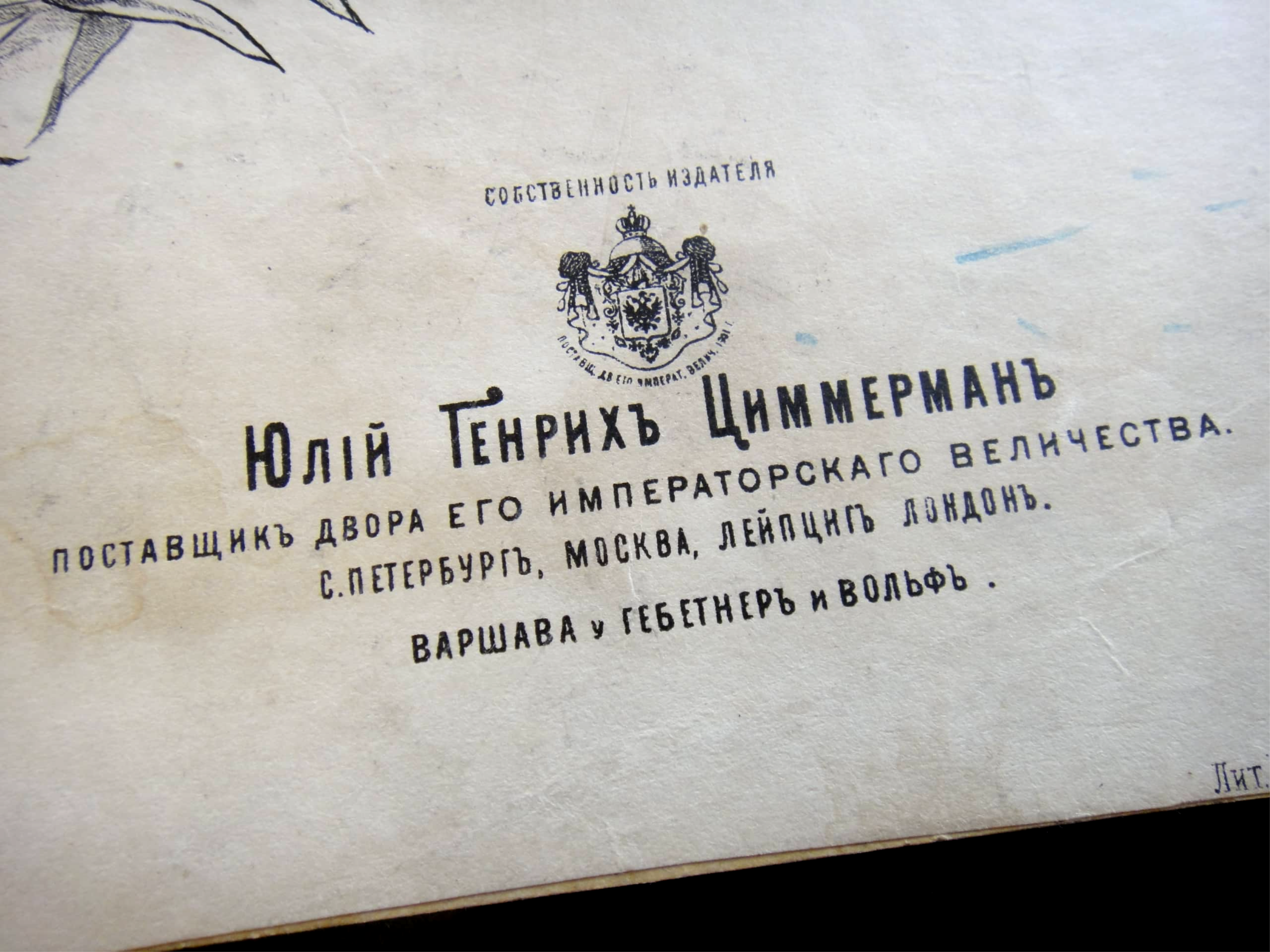 Санкт-Петербург, издатель Юлий Генрих Циммерман (№ 2297), поставщик Двора Его Императорского Величества